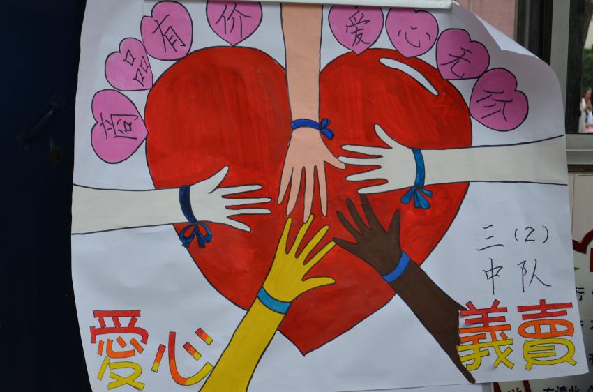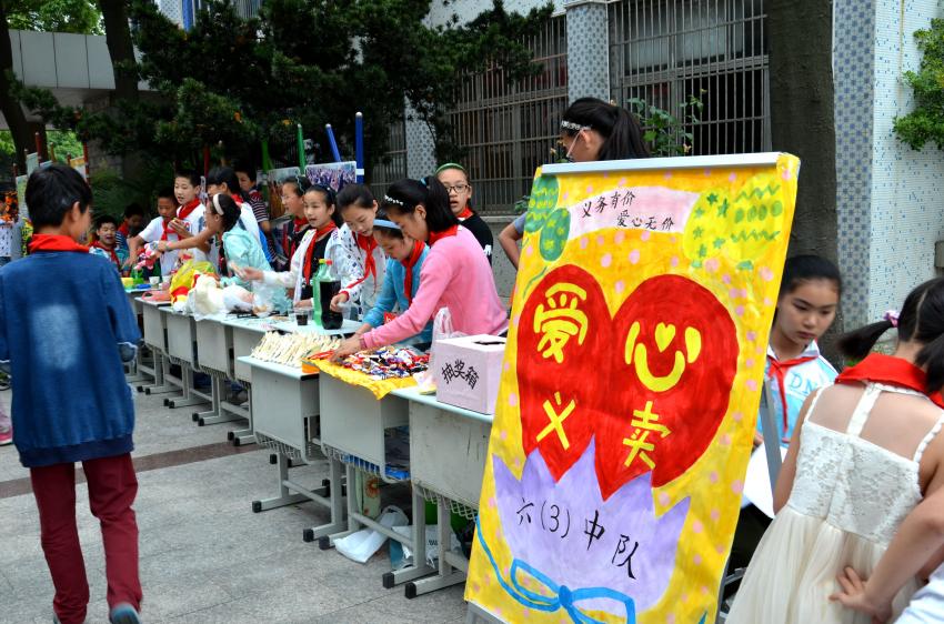 2015年5月29日下午1点,我们青阳实验小学热闹非凡。成千上百种物品形成了一个大型购物超市,吆喝声、叫卖声、讨价还价声,响彻校园。原来,这里在举行一年一度的红领巾爱心义卖活动。本次活动通过少先队员爱心捐物,在六一到来前夕进行义卖,将所得钱款捐助给“手拉手”对口援助学校——新疆伊犁州霍城县三道河乡中心学校。