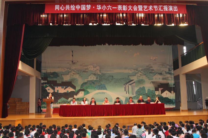 百花开放笑声甜,拂面浓馥六月天。六月是少年儿童的节日,六月是歌声飞扬的季节。5月29日上午,华士实验小学在体育馆举行“同心共绘中国梦”六一表彰大会暨艺术节汇演活动。华士镇教育科领导、镇团委书记莅临现场,学校领导、师生、部分家长代表与少先队员一起呵护童心,见证成长,共同庆祝六一儿童节。